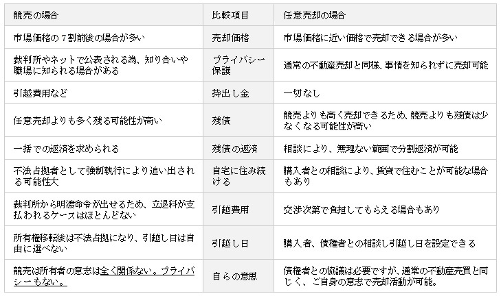 任意売却と競売の違いを比較